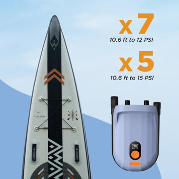 Easily inflate paddle boards up to 20 PSI—ideal for high-performance SUPs that demand extra pressure.